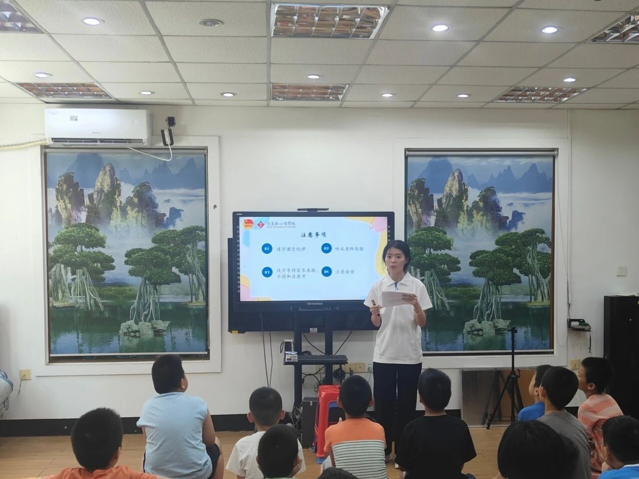 在开营仪式中,志愿者代表对本次夏令营整体安排进行了介绍,课程将围绕“以德育心”“以智育心”“以体育心”“以美育心”“以劳育心”五大主题,开启12个特色课程项目,为孩子们带来丰富多彩的学习体验。