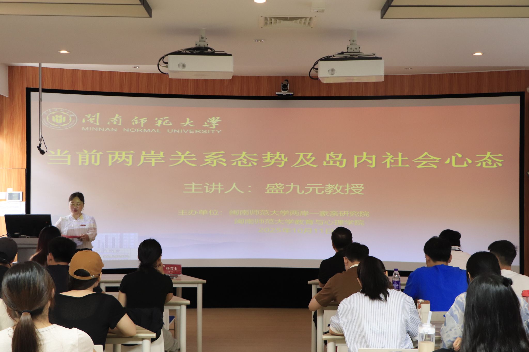 10月11日上午,太阳成集团两岸一家亲研究院与太阳成集团tyc33455ccwww联合邀请上海交通大学台湾研究中心主任、国际与公共事务学经理聘教授盛九元来公司作《当前两岸关系态势及岛内社会心态》主题讲座。此次讲座由公司党委副书记杨君玉主持,太阳成集团两岸一家亲研究院执行经理陈丽丽以及公司师生代表参加。