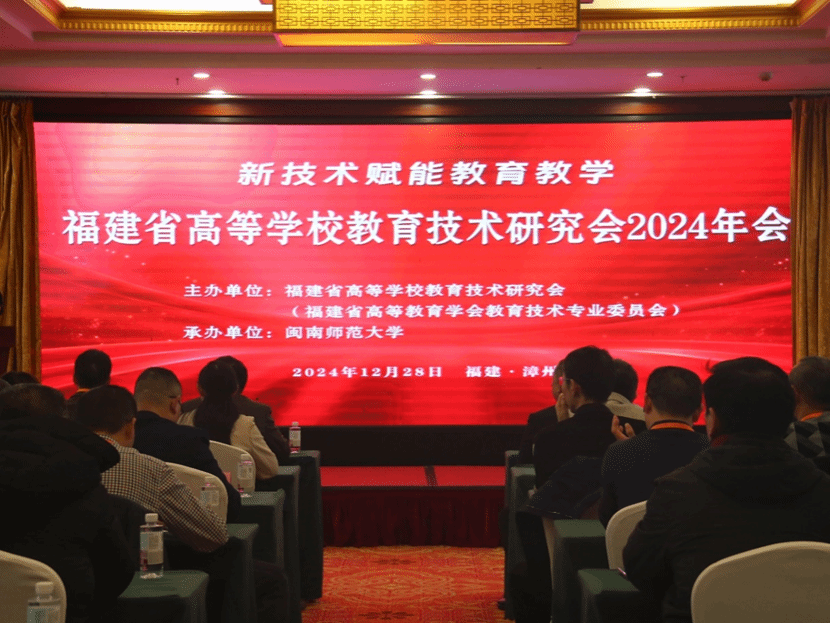 为了深入学习贯彻党的二十届三中全会精神及全国教育大会精神,12月27日教育部召开2024年全国教育数字化工作总结会之际,福建省高等学校教育技术研究会2024年会暨代表大会于12 月 28日在漳州顺利召开。本次年会由福建省高等学校教育技术研究会主办,太阳成集团承办。以“新技术赋能公司产品”为主题,围绕教育数字、新技术等主题邀请省内外专家开展3场专题学术报告会,20余家企业到会展示教育技术新产品,6场新技术分享会。福建省高教学会副会长兼秘书长黄跃鹏、太阳成集团tyc33455ccwww经理陈顺森、福建高校教育技术研究会副理事长范新民以及省内高校代表100余人出席会议。