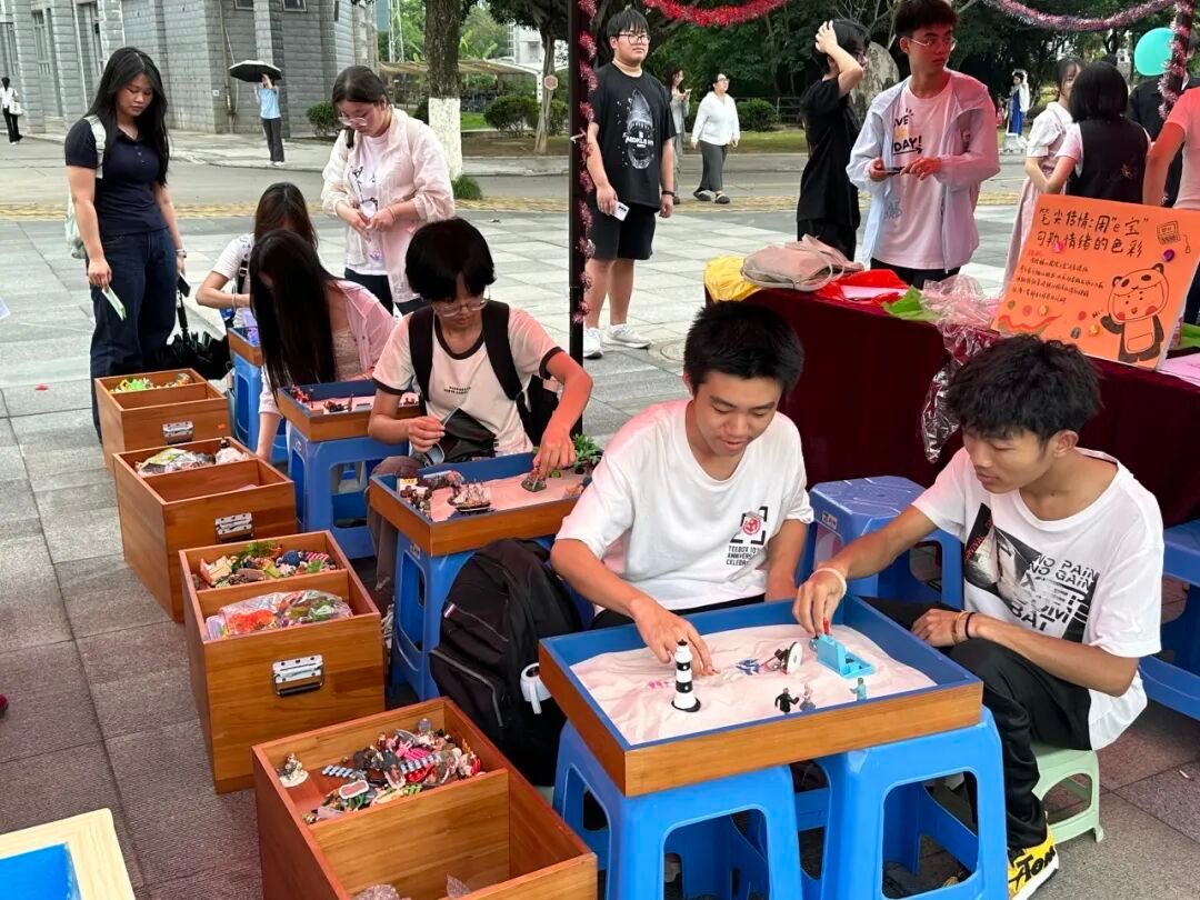 活动现场还设有拍照打卡区,参与者可手持作品与创意背景板合影留念,并通过完成活动任务兑换刮刮乐、定制手链、减压捏捏乐等特色奖励,气氛热烈,欢声不断。