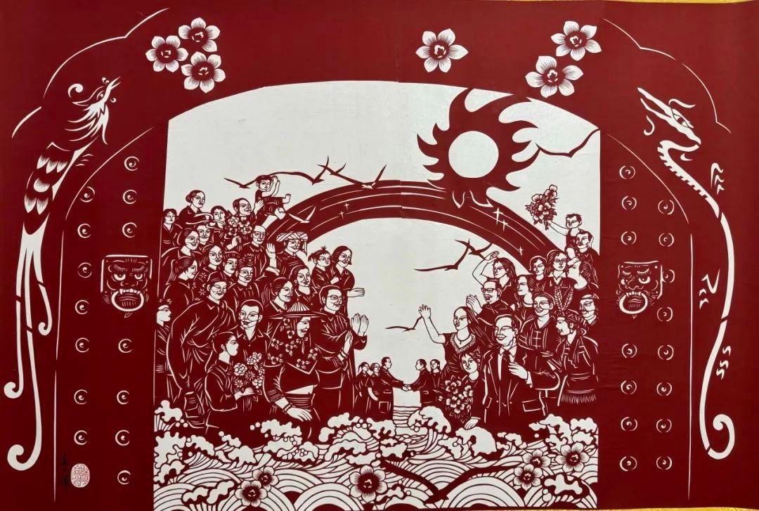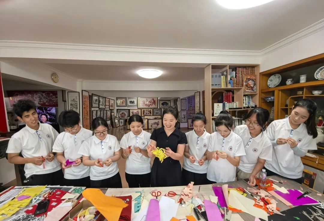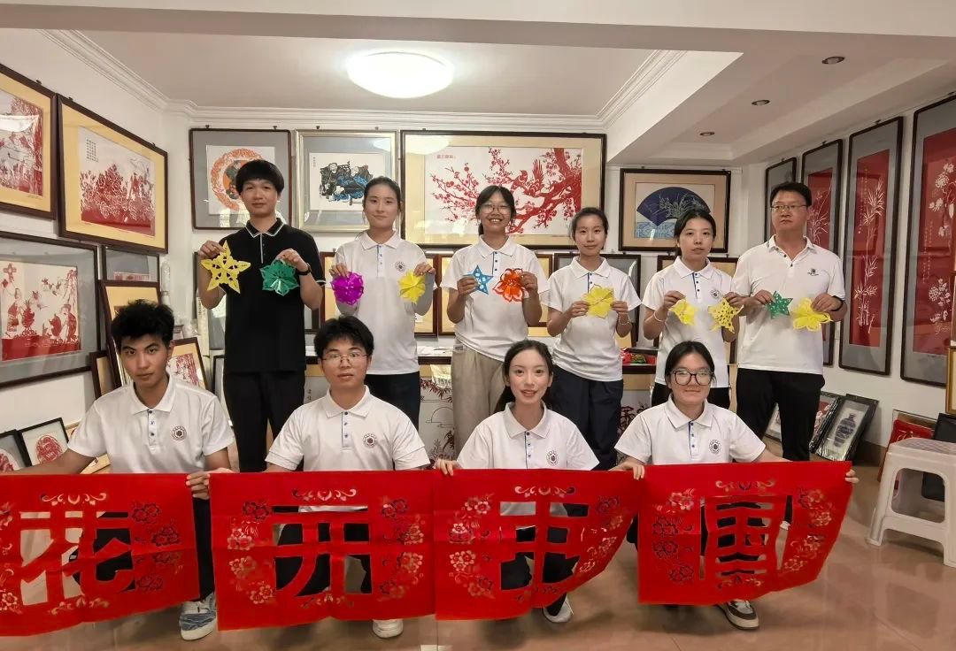 实践队员们来到当代剪纸艺术家高少萍的剪纸艺术馆,在工作人员的带领下参观高少萍老师的剪纸作品和艺术馆发展历程,其中创新作品《两岸一家亲》更是高老师发挥剪纸媒介作用,促进两岸团结发展的生动写照。队员们还体验了“三刀剪出水仙花”,观摩了工作人员“花开中国”的作品裁剪过程,深入体会特色产业在搭建跨越海峡情感纽带的强大力量,探寻剪纸技艺转化为共富引擎的潜在动力。