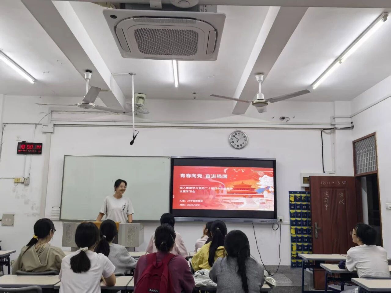 党的二十届四中全会胜利召开,擘画了“十五五”时期的发展蓝图,吹响了以中国式现代化全面推进强国建设的冲锋号。全会强调要“推动教育科技人才一体化发展”,教育是强国之基,小学教育更是基础中的基础。作为一名小学教育专业的免费师范生,我们将来要面对的是最富想象力和可塑性的群体,是未来实现中国式现代化的生力军。我深知使命在肩,未来我将以“严爱相济”的育人智慧,坚守三尺讲台,努力让每个孩子都享受到高质量的教育,为他们的人生奠定坚实基础,为建设教育强国贡献青春力量。