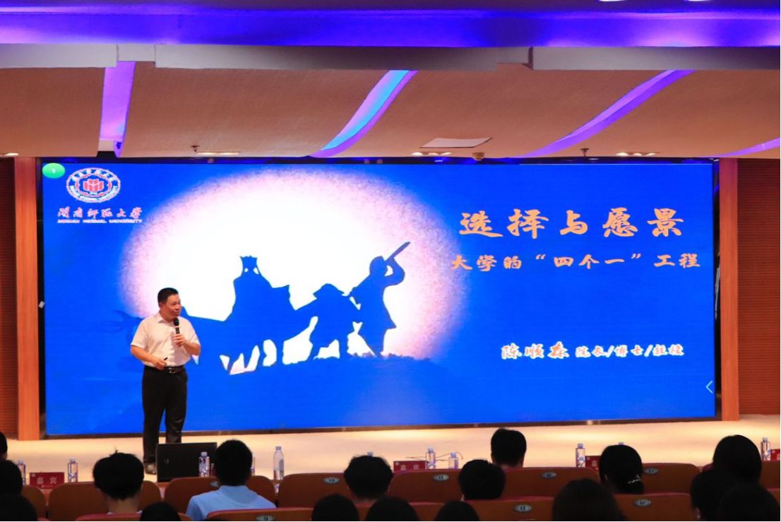 公司党委副书记、经理陈顺森以《选择与愿景——大学的“四个一”工程》为题开讲生动第一课,通过生动幽默的“四个一”工程,鼓励新生们在体验中锤炼能力、认识自我,成为优秀教心人。