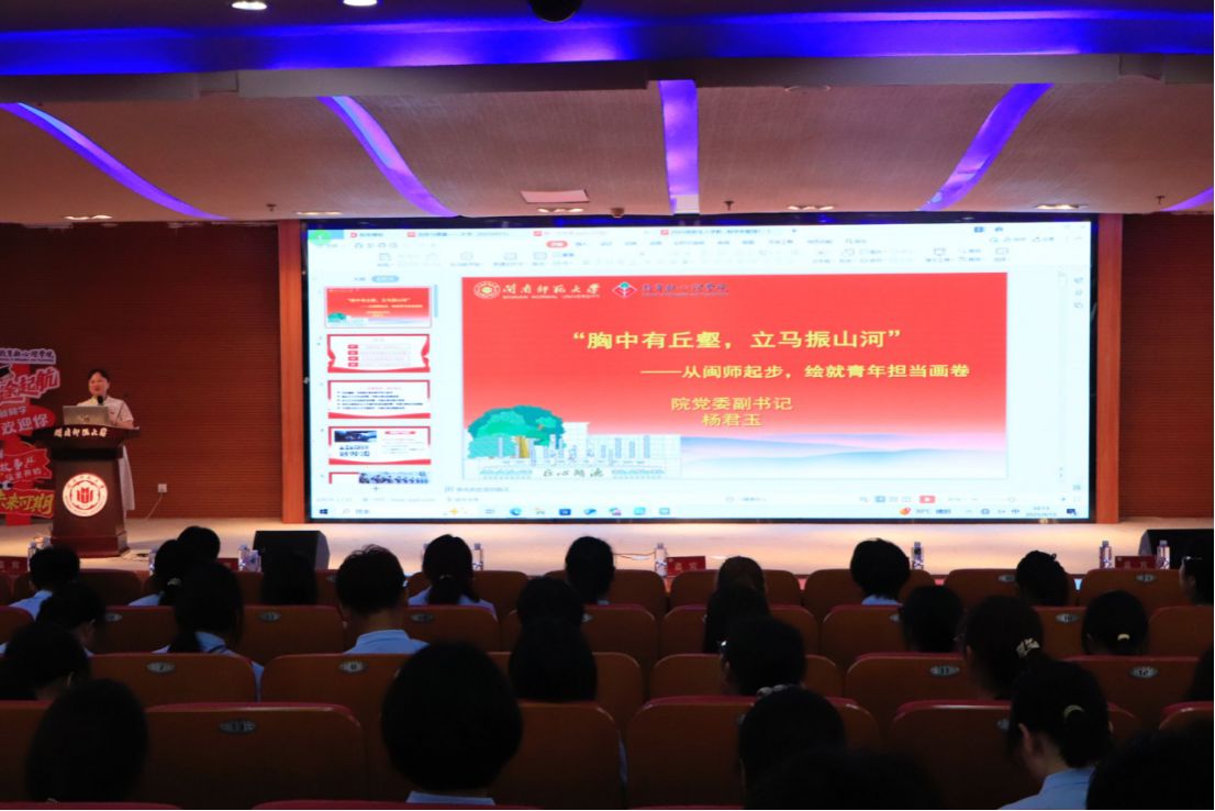 杨君玉以《胸中有丘壑,立马振山河:从闽师起步,绘就青年担当画卷》为题,为新生开展了一门生动的“信仰第一课”,鼓励同学们坚定理想信念,引导同学们更好地树立远大理想,明确时代责任。