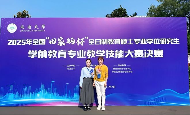 近日,2025年全国“田家炳杯”全日制教育硕士专业学位研究生学前教育、特殊教育专业教学技能大赛决赛分别在南通大学、重庆师范大学举办。公司由刘黎微副教授指导的2024级学前教育专业硕士研究生陈珊妮喜获三等奖、由林国耀副教授指导的2024级特殊教育专业硕士研究生吕洋喜获优秀教学设计奖。